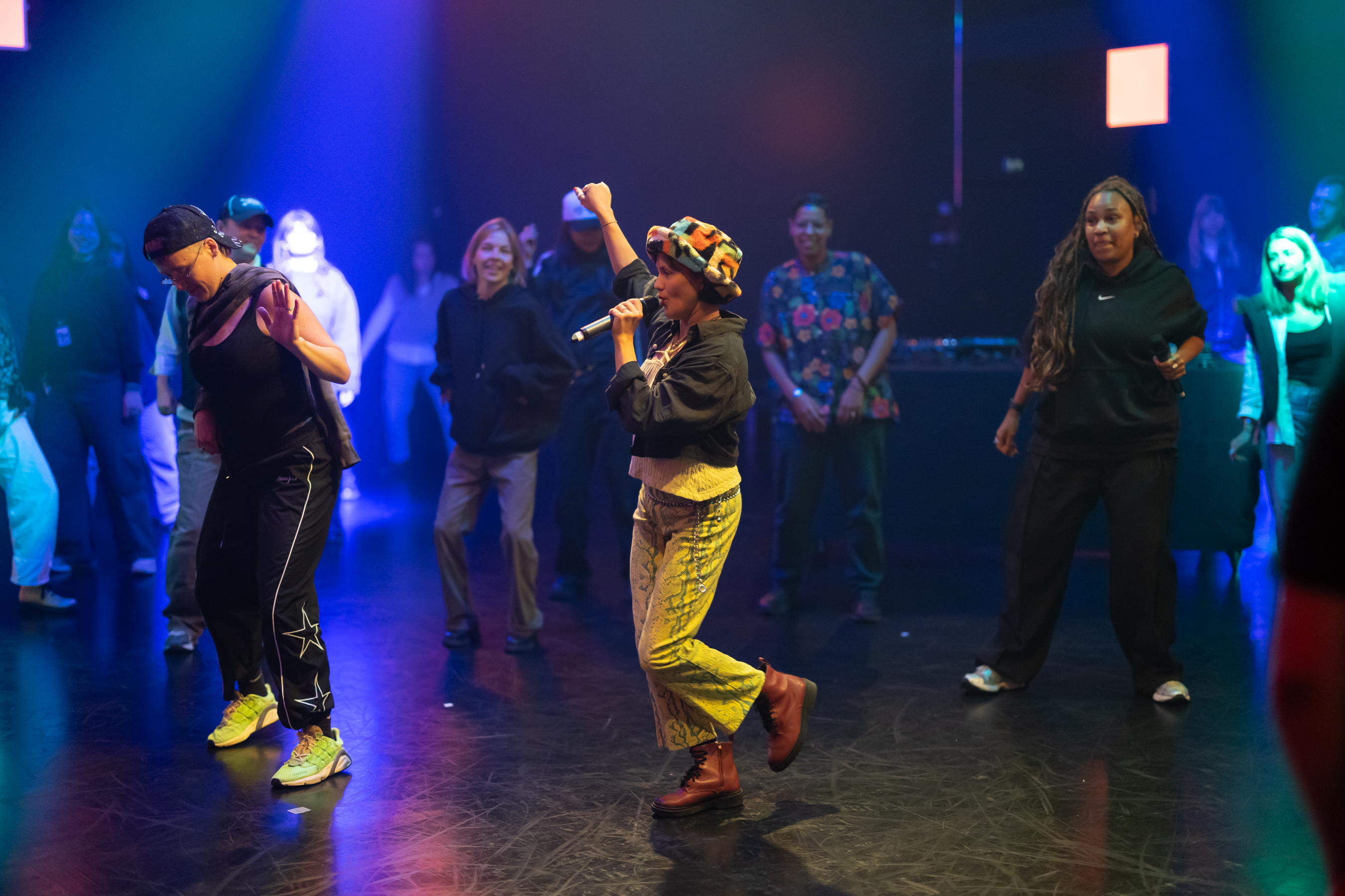 Lines of Joy and Resistance is a participatory dance action that invites everyone to come together and groove side by side. Through iconic line dance rooted and embraced in Afro-diasporic, African American, and LGBTQ+ disco and club cultures we embody joy as resistance, and repetition as connection.